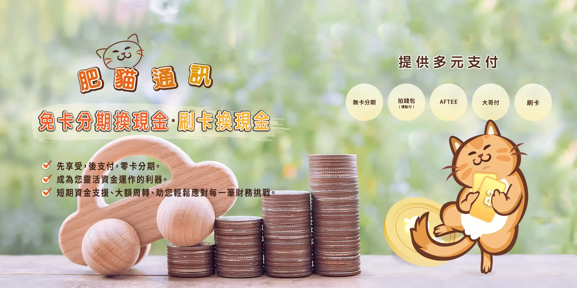肥貓通訊換現金專注於提供無卡換現金、額度換現金、刷卡換現金、信用卡換現金等多元資金周轉服務,讓您在急需現金時,快速獲得資金,靈活應對各種財務需求。我們的服務安全、專業、便捷,為您提供即時且可靠的現金兌換方案。